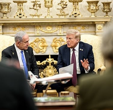 Pic: WikiMediCommons: President Donald Trump and Israeli Prime Minister Benjamin Netanyahu review the U.S. peace plan for Gaza, Monday, September 29, 2025, during a bilateral meeting in the Oval Office. (Official White House Photo by Daniel Torok)
